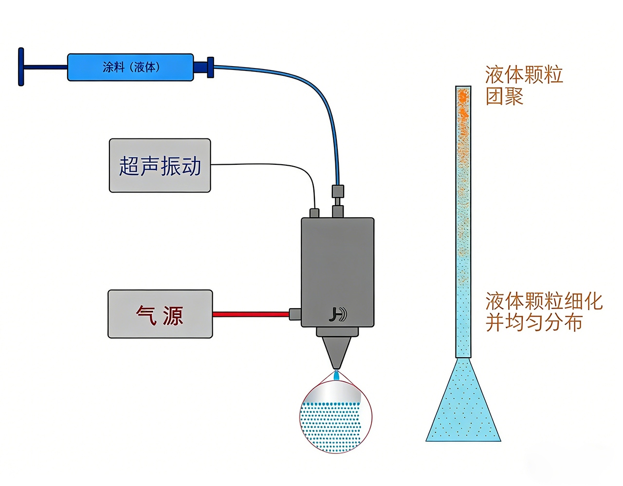 超声波芯片喷涂的原理是通过超声波的高频振动能量将液体分散成微小的液滴,然后通过气流将这些液滴均匀地喷涂到芯片表面。