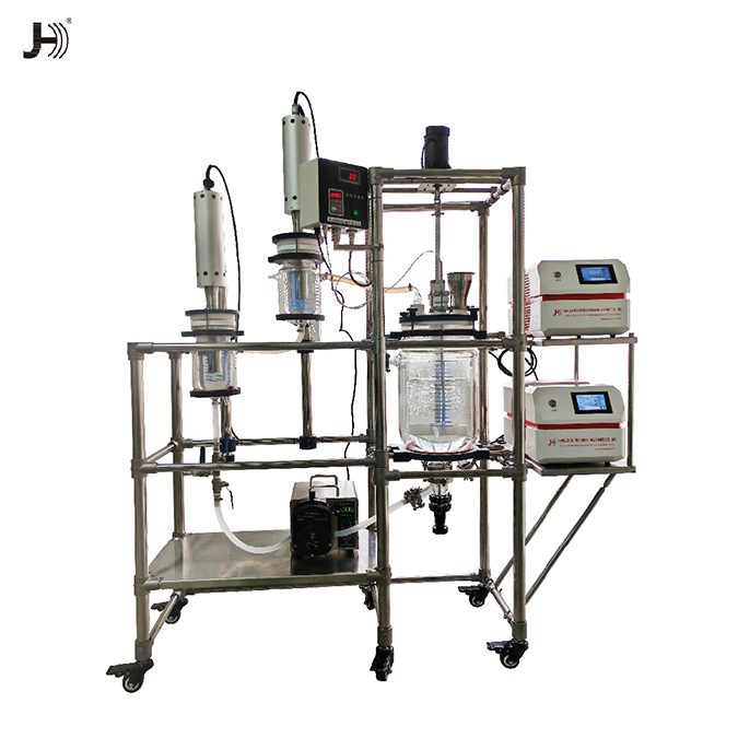 设备构成: 超声波振动棒+超声波控制器+超声反应罐+搅拌罐(配搅拌电机)+支架