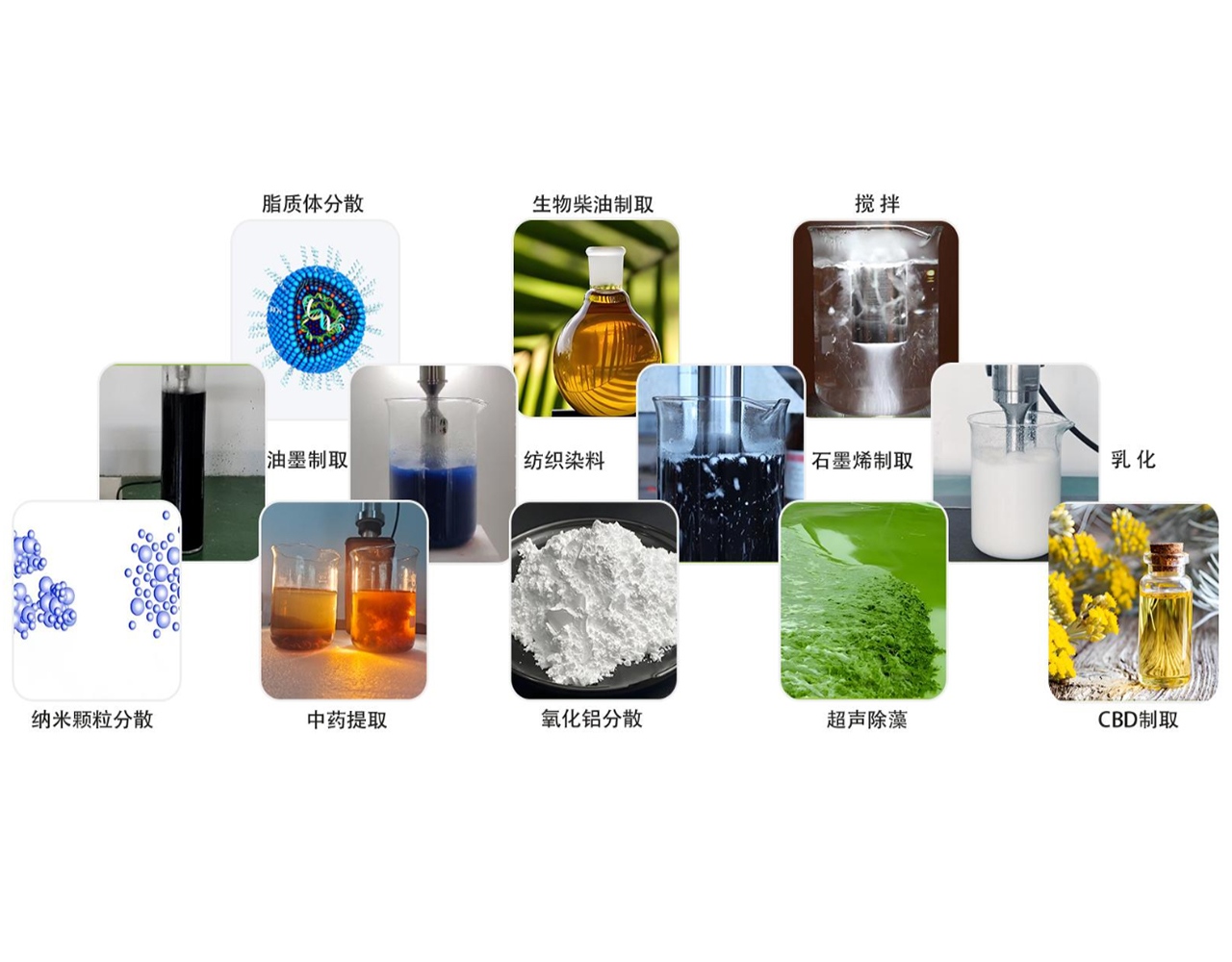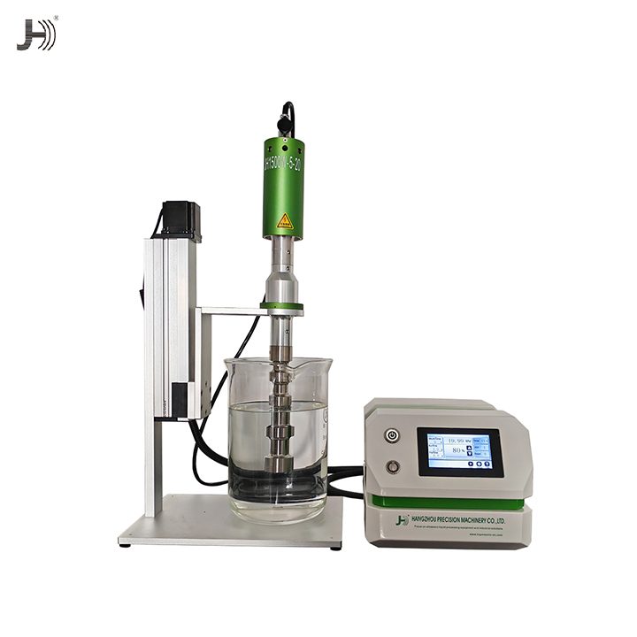 通过超声波的空化效应,即超声振动棒每秒20000次的高频振动形成微气泡(空化核),这些气泡快速膨胀、震荡并瞬间收缩直至崩溃,这个过程中产生局部高温、高压及强大的冲击波,这些能量促使物料颗粒细化、解团聚、相互融合、植物细胞壁破裂等现象从而实现分散、均质、乳化、搅拌、提取等效果。